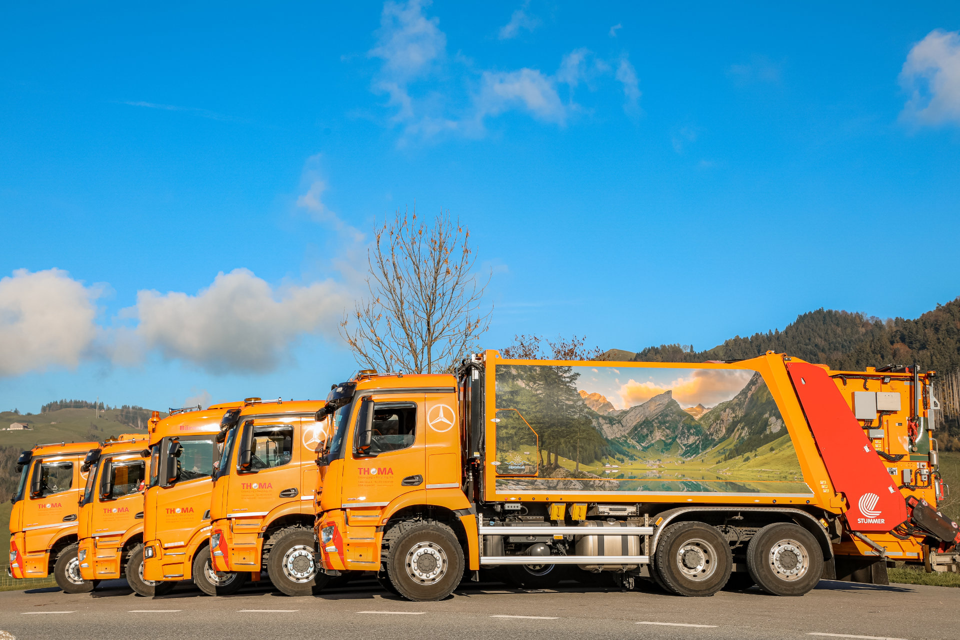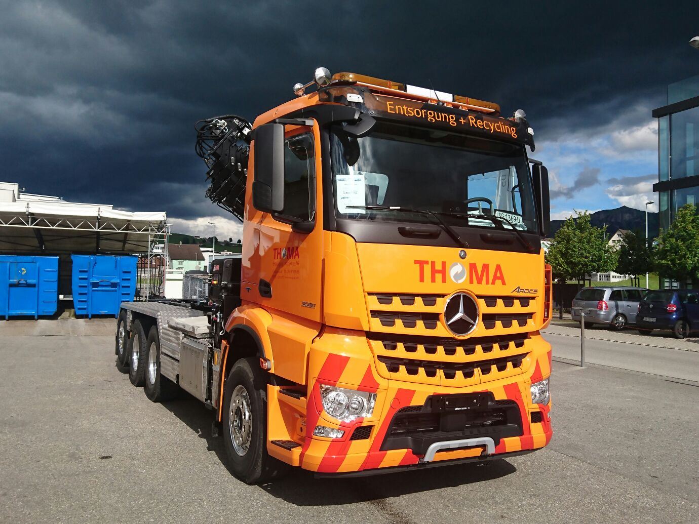 Die THOMA Entsorgung AG verfügt über einen vielseitigen und modernen Fuhrpark, der speziell auf die Anforderungen der professionellen Entsorgungsbranche ausgerichtet ist. Unsere Fahrzeuge sind mit modernster Technik ausgestattet und gewährleisten einen zuverlässigen, effizienten und umweltschonenden Transport von Abfällen und Recycling-Material.