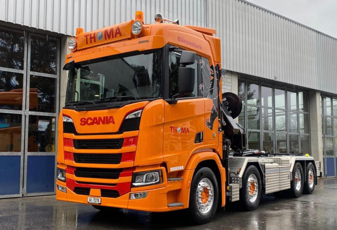 Der Scania R770 ist für anspruchsvolle Einsätze konzipiert und bietet die perfekte Balance zwischen Leistung und Wirtschaftlichkeit. Ausgestattet mit hochmoderner Krananlage und Abrollcontainersystemen bewältigt er zuverlässig auch schwierige Aufgaben.